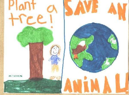 paper bags with Earth Day Pictures and slogans.The art work was as diverse